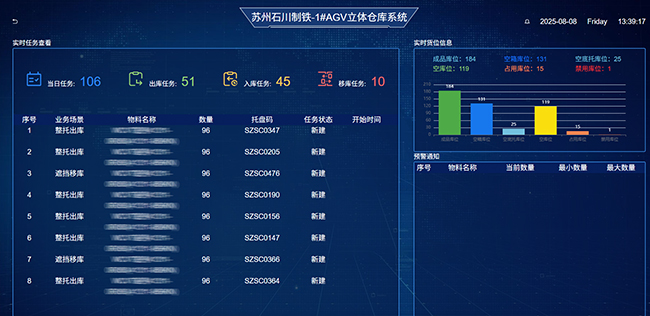 Managers can monitor the real-time and comprehensive dynamics of warehouse inventory and operation status through a visual monitoring screen.